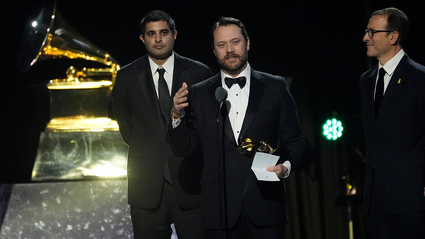 বাম এবং প্রেসিডেন্ট কার্টারের নাতি জেসন কার্টার কবির শেহগাল সেরা অডিওবুক, বিবরণী এবং গল্পের গল্পের রেকর্ডিংয়ের জন্য পুরষ্কার গ্রহণ করেছিলেন, “সমভূমিতে সর্বশেষ রবিবার: একটি শতবর্ষ উদযাপন” এর জন্য রবিবার, ফেব্রুয়ারী 2, 2025 -এ th 77 তম বার্ষিক গ্র্যামি পুরষ্কারের সময় , লস অ্যাঞ্জেলেসে। (এপি ফটো/ক্রিস পিজ্জেলো)