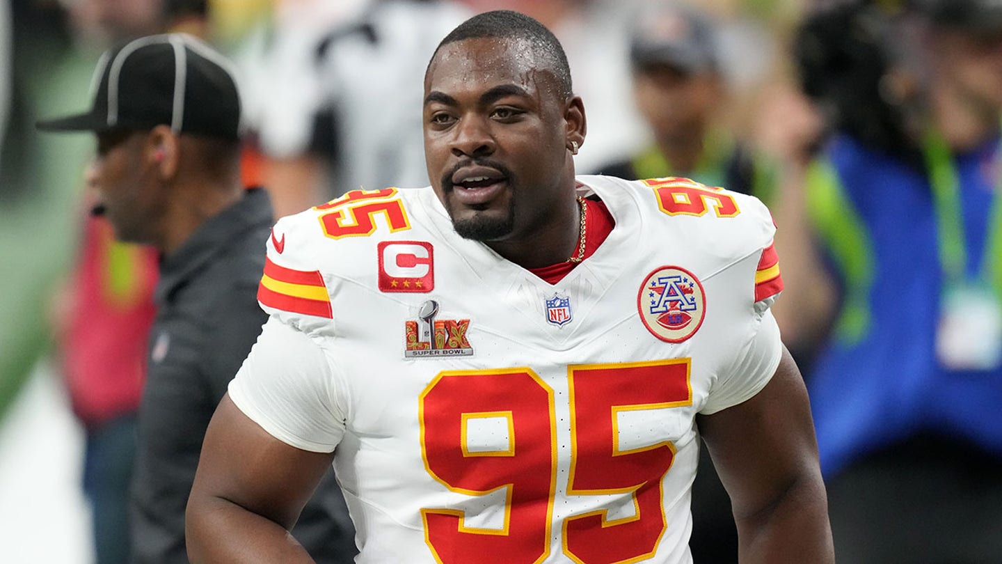 কানসাস সিটি চিফস ডিফেন্সিভ মোকাবেলা ক্রিস জোন্স সিজারস সুপারডোমে ফিলাডেলফিয়া ag গলসের বিপক্ষে সুপার বোল লিক্সের আগে মাঠে নেন। (কির্বি লি-ইম্যাগান চিত্র)